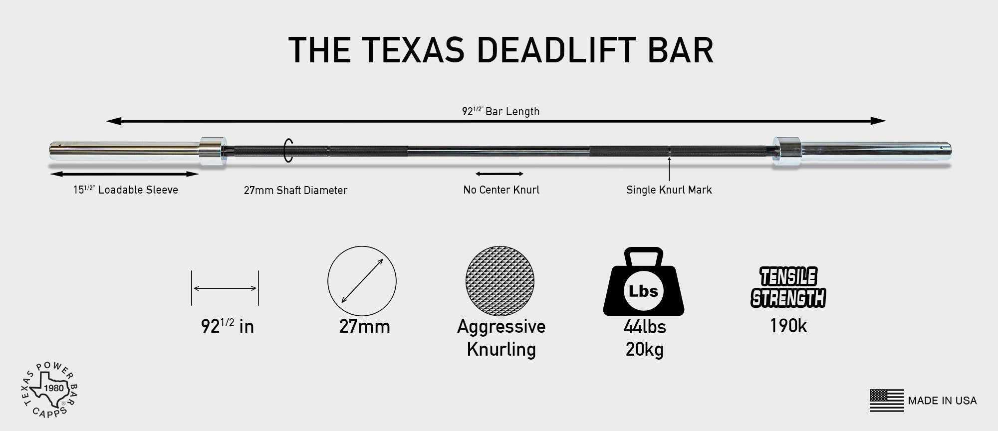 - "Original" Texas Power Bar: This is the bar that set the powerlifting industry standard back in 1980 — and continues to define it. Made For Multiple Powerlifting Movements Like Squat, Bench, Deadlift, & More.